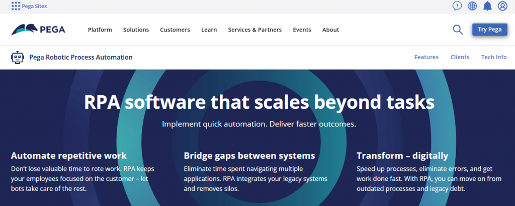 Pega focuses on delivering end-to-end process automation solutions that integrate seamlessly with its customer engagement platform.