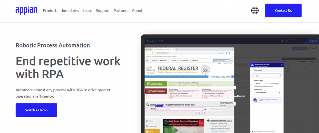 Appian combines low-code development with powerful workflow automation capabilities, making it suitable for organizations seeking rapid deployment solutions.
